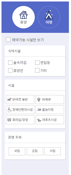 4. 휴양시설과 야영시설을 나누어 선택 가능합니다